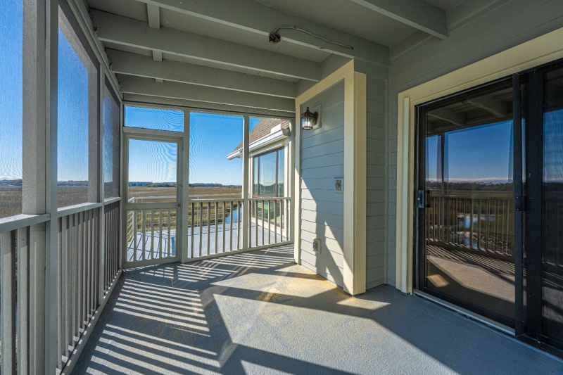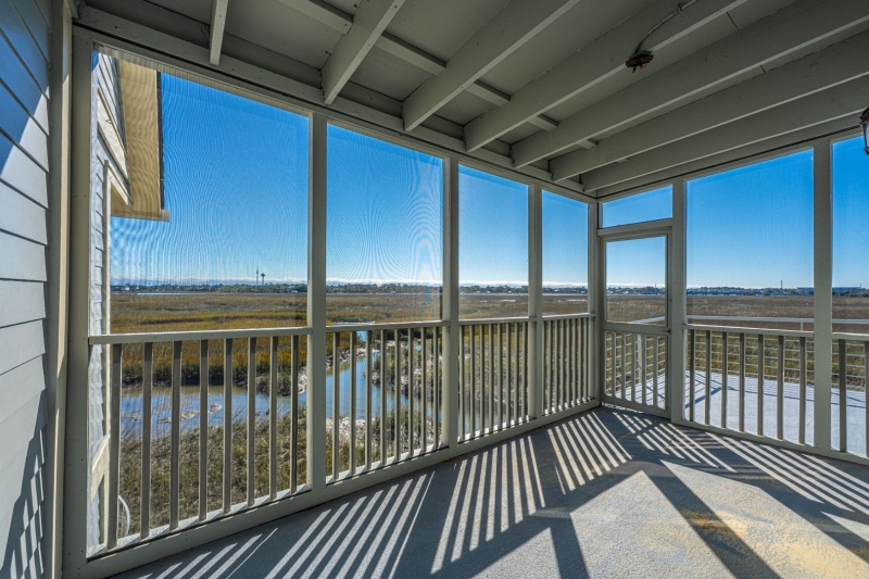 Experience the perfect blend of coastal charm and modern comfort in this beautiful three-bedroom, three-bathroom condo in the coastal town of Folly Beach. Nestled in a gated Island community, this home offers incredible views of the Folly River and is approx 1.5 miles to the beach. Designed with an open floor plan and high vaulted ceilings, the main living area is bathed in natural light from numerous windows, creating a bright and airy atmosphere. With a Freshly Painted interior, New Carpet in Family room and Primary Bedroom plus the Kitchen has Beautiful Granite Counter Tops. Enjoy two separate primary suites, one conveniently located on the first floor and another on the second floor, providing flexibility and privacy. Outdoor living is a dream with two spacious balconies and a screened porch. New roof and exterior painted in 2025.