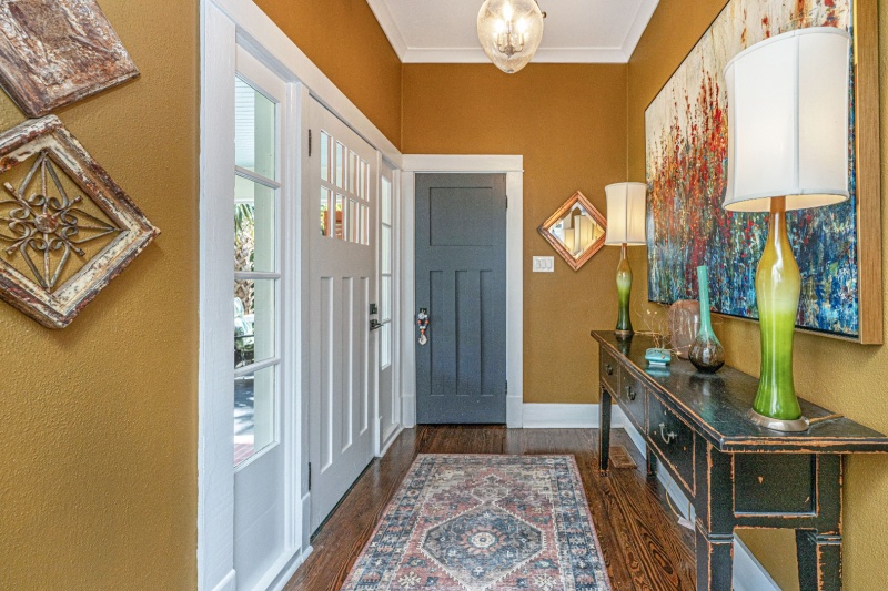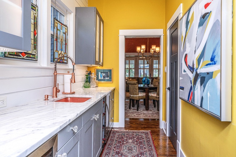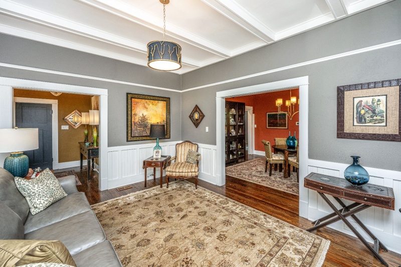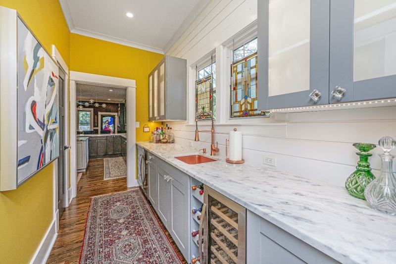 Welcome to one of the most remarkable homes in Walterboro! Originally built in 1905 and beautifully renovated, this 3-bedroom, 2.5-bath home spans approximately 2,550 square feet and is registered as a historic property. From the moment you arrive, the charm is undeniable — featuring an inviting front porch with elegant copper lamps, wide brick steps, and lush landscaping that create a warm Lowcountry welcome. Inside, no detail has been overlooked. The home features new plumbing, wiring, roof, and appliances, while preserving its timeless character. The soaring beam ceilings, heavy crown moldings, bold wainscoting and custom cabinetry pair perfectly with gleaming quartz and marble/limestone counter tops, tile accents, and refinished hardwood floors that flow seamlessly throughout.