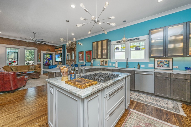 The kitchen, which opens to the spacious family room, features high smooth ceilings and an abundance of natural light streaming through numerous windows. At the heart of the space is a large island equipped with a downdraft cooktop and pot filler perfect for those who love to cook and entertain. The wall oven and built-in microwave (which also functions as a convection oven) are stainless steel, combining style with functionality. Adding to the thoughtful design, the kitchen includes two beverage centers one for your favorite wines and another for soft drinks making it as practical as it is beautiful. Just off the family room is a spacious screened porch, with a traditional wood burning fireplace that enjoys a Gas Ignitor, a deck with Hot Tub overlooking a large fenced backyard ideal for relaxing or entertaining. A detached two-car garage with extra storage space added to store lawn mower, tools, etc.